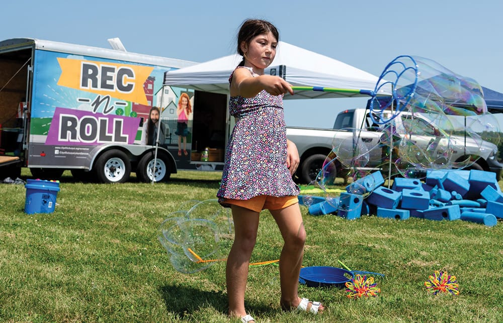 Each Monday morning, the City of Dubuque Parks & Recreation posts its weekly Rec-N-Roll trailer schedule on social media. The unit sets up at parks throughout the community, offering activities and yard games, including Imagination Playground blocks, bubbles, a bean bag toss, a scoop ball, a large dart board with kick balls, and more. The games and activities are free and open to all, no registration required.
